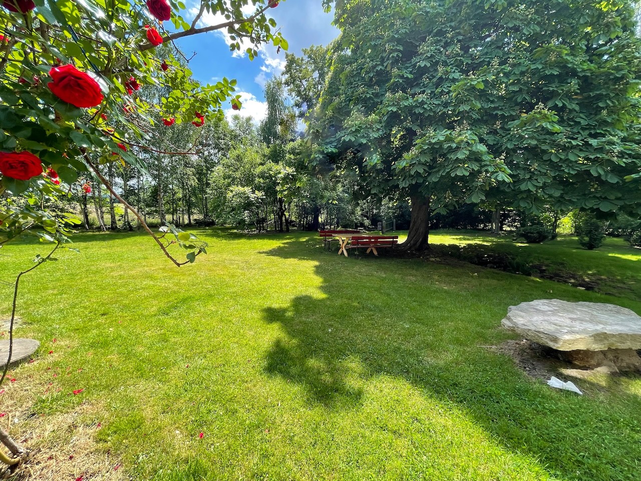 Rozległy teren, pełen zieleni i kwitnących roślin, tworzy idylliczną scenerię, idealną do odpoczynku na łonie natury. Wśród kasztanowców i bujnej roślinności znajdują się urokliwe zakątki wyposażone w ławeczki, na których można zatrzymać się na moment i delektować się ciszą otoczenia.