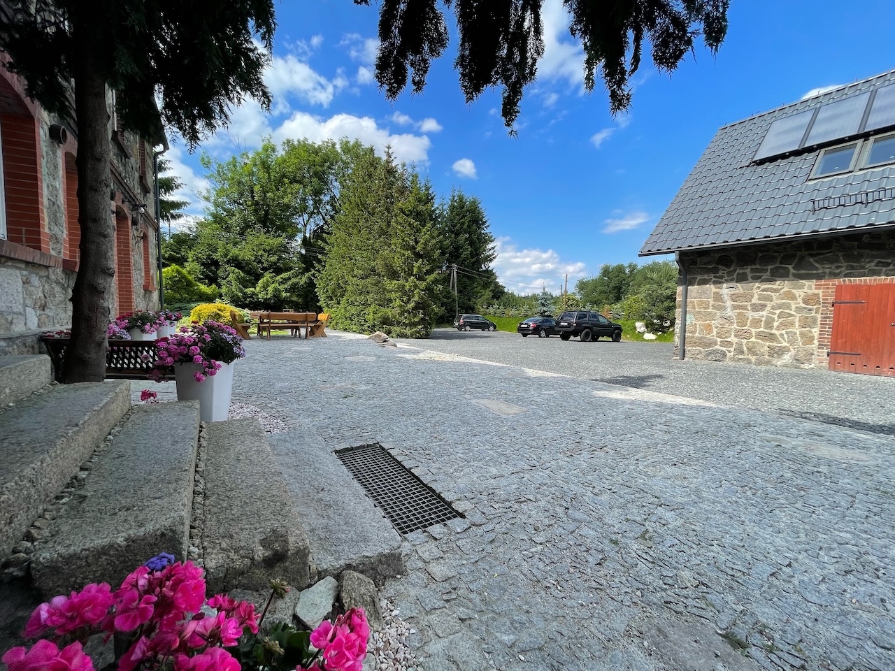 Przestronny parking pensjonatu zapewnia gościom wygodę i łatwość parkowania. Chociaż jest to parking niestrzeżony, jego rozległość i dobrze zaplanowana przestrzeń umożliwiają bezproblemowe znalezienie miejsca dla każdego rodzaju pojazdu.