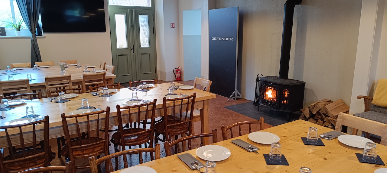 Jadalnia jest miejscem wypoczynku – dzięki obecności telewizora, goście mogą śledzić aktualności czy oglądać ulubione programy, delektując się przy tym filiżanką kawy lub herbaty. Kominek dodaje całemu pomieszczeniu ciepła i uroku, tworząc idealne warunki do długich, wieczornych rozmów i budowania wspomnień.