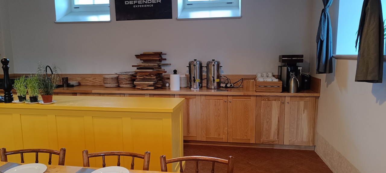Jadalnię wyposażono w wygodne stoły z krzesłami, więc umożliwia komfortowe jedzenie w większym gronie. Dostępne są także ekspres do kawy i czajniki.