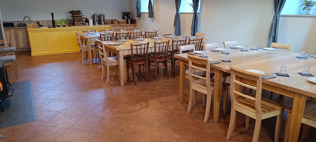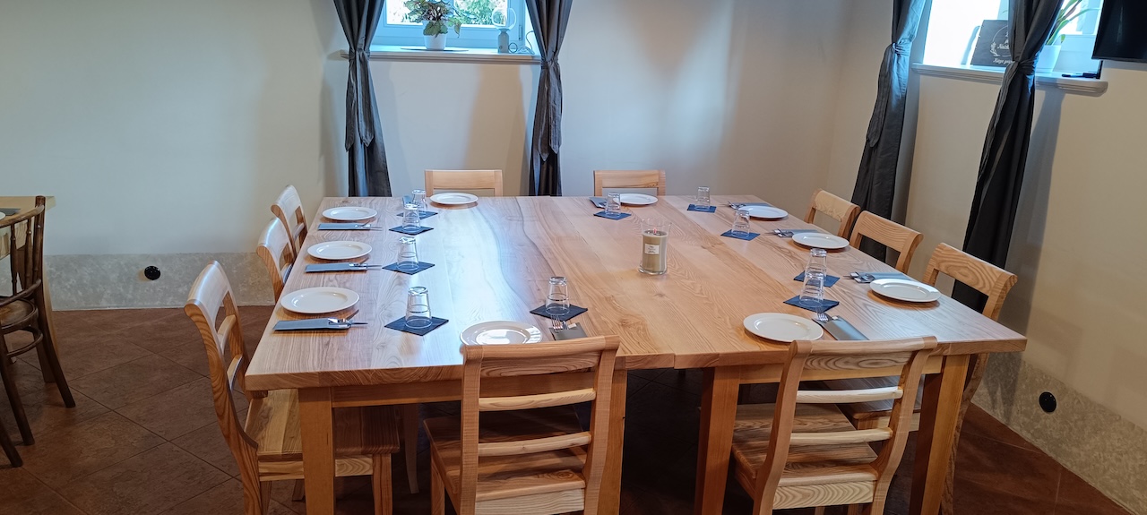 Jadalnia Domu Pod Kasztanem stanowi serce pensjonatu, gdzie tradycja wspólnych posiłków łączy się z nowoczesnymi udogodnieniami, zapewniając komfort i wygodę pobytu.